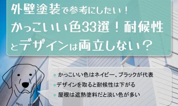外壁の塗装外壁塗装で参考にしたいかっこいい色33選!耐候性とデザインは両立しない? 外壁塗装でかっこいい色にしたい!と思う方に参考にして貰いたい家のサンプルを33通り紹介します。外壁だけではなく、屋根の色も組み合わせることで、理想の家の色に近づけることができます。そこで関わってくるのが耐候性。デザインと耐候性の両立は難しいのが現状です。 2022.02.22外壁の塗装